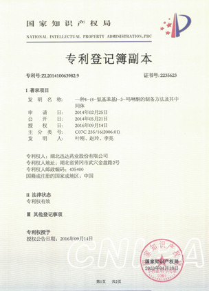 公司擁有一支高素質科研隊伍,具備專業(yè)而高效的研發(fā)能力。近幾年,共取得科技成果30項,其中9項獲國家發(fā)明專利,2項獲湖北省科技進步獎,開發(fā)新產品8個,綠色合成、手性合成和催化等技術引領行業(yè)發(fā)展。主要銷往歐美、日本、韓國、中東、印度等40多個國家和地區(qū)。